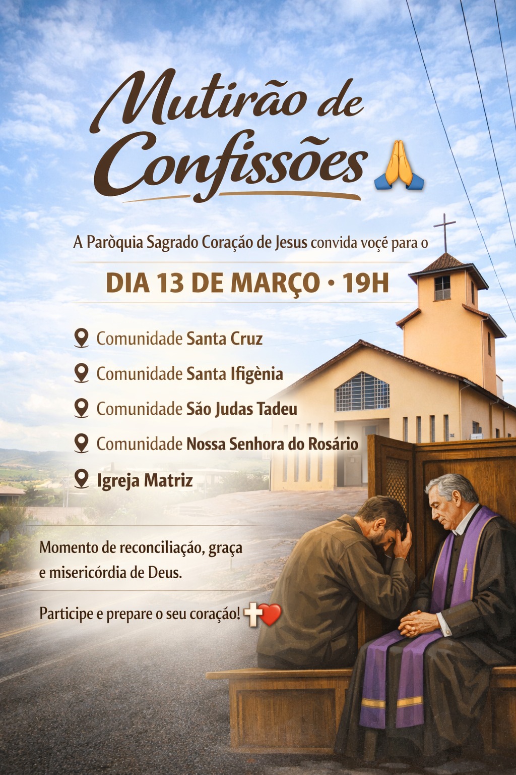 Mutirão de Confissões, dia 13 de março (sexta-feira), às 19h nas comunidades: